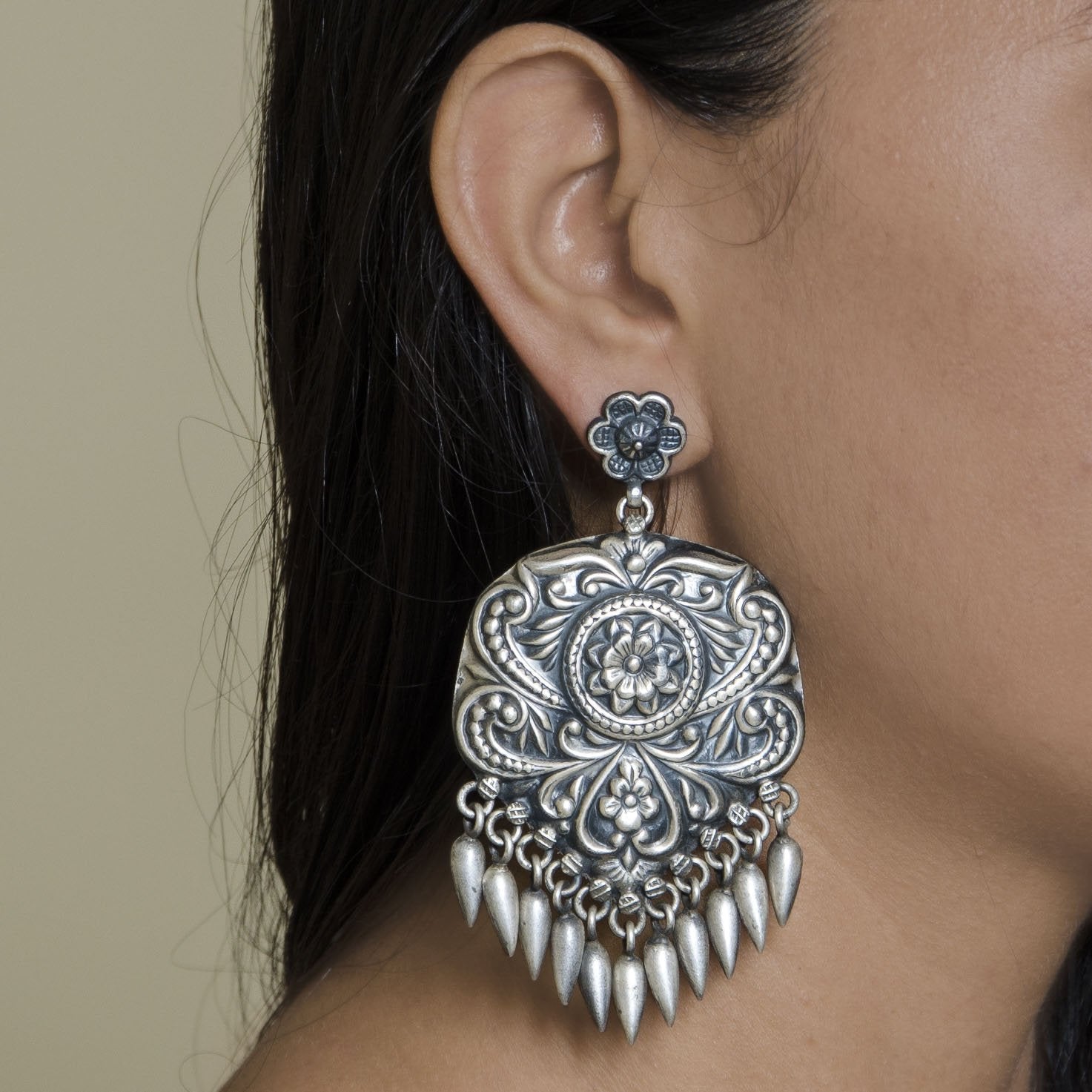 This earing has been made by hand in silver and may have slight irregularities that are a natural outcome of the human involvement in the process.