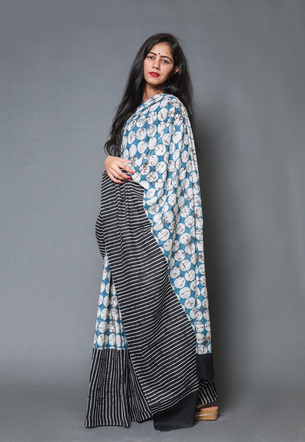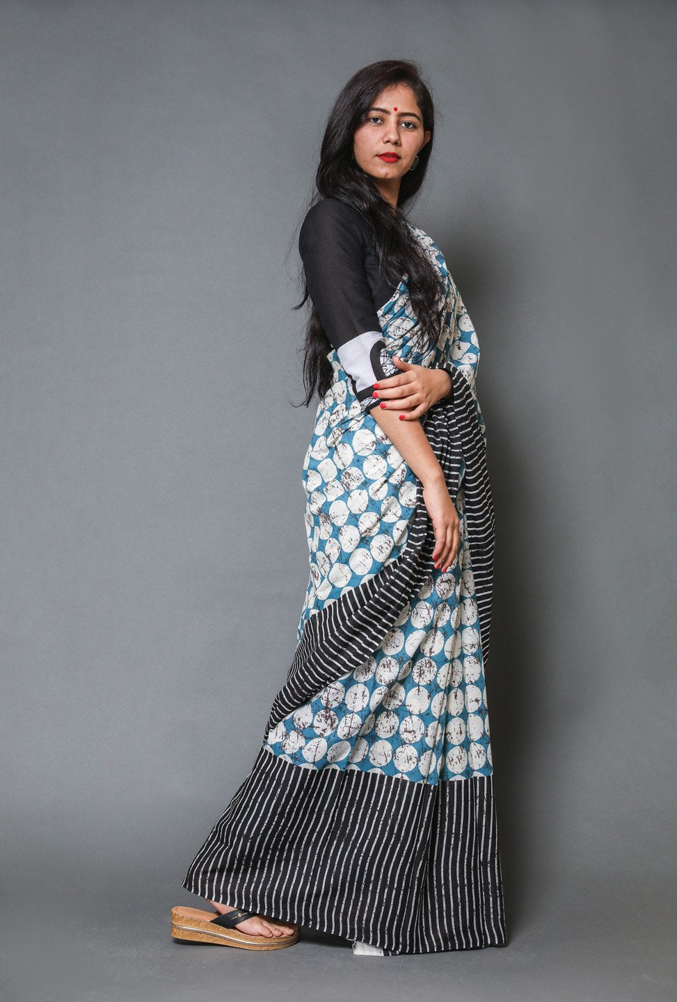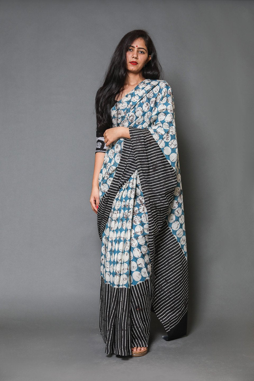 This mul cotton block print saree with unstitched blouse. This is perfect for summer session. Block always give a classy look, this can be paired with flat sandals and oxidized jewelry.
