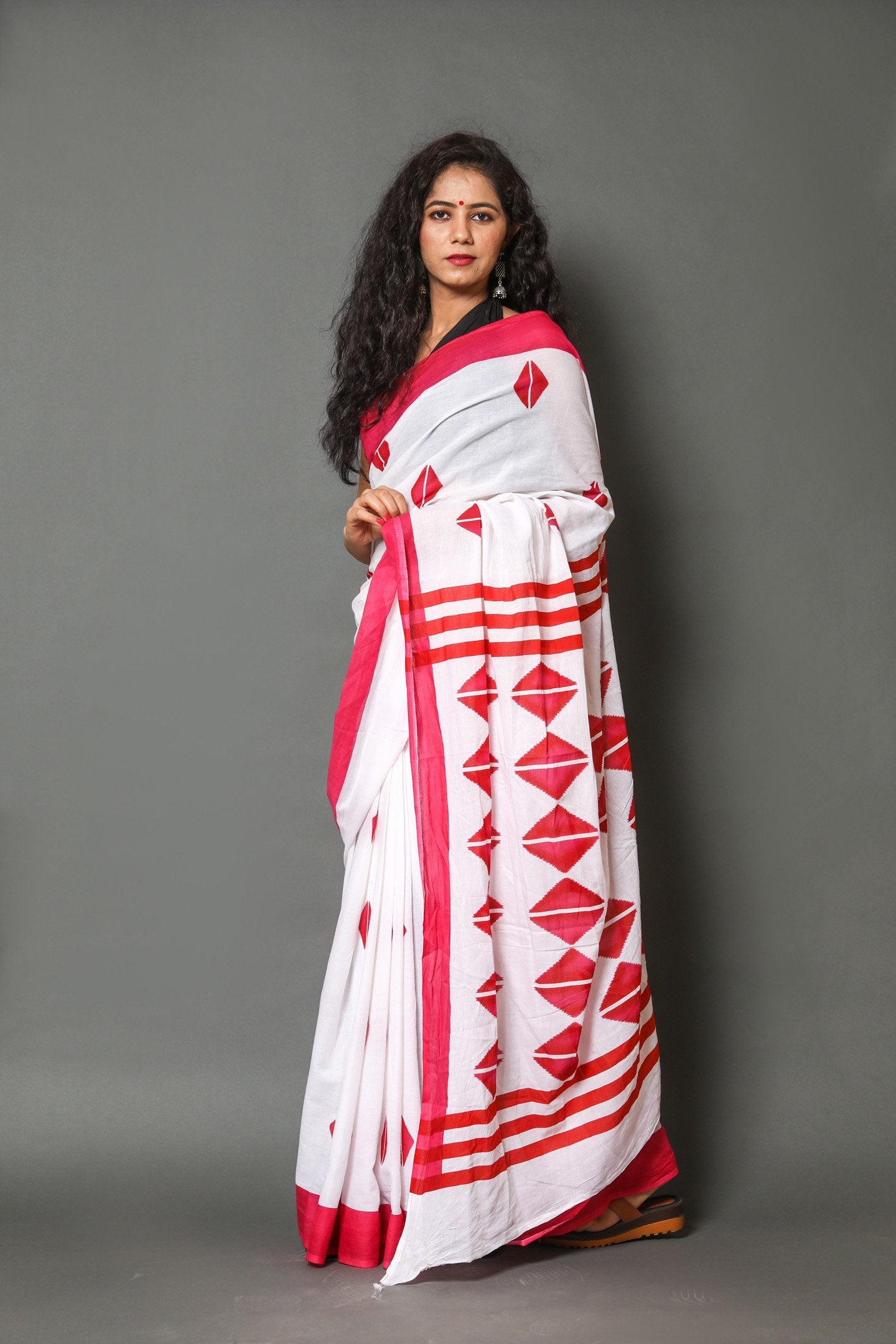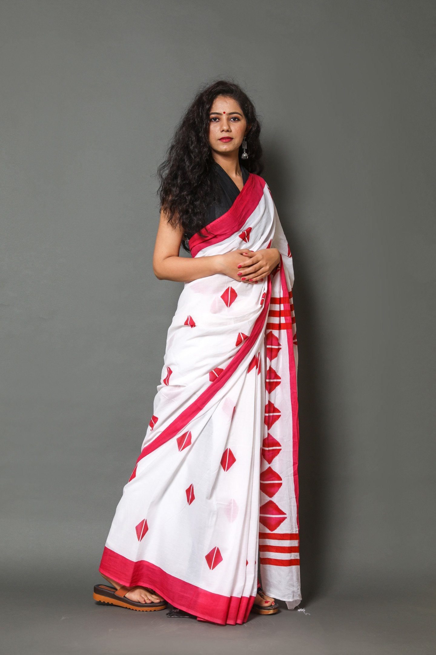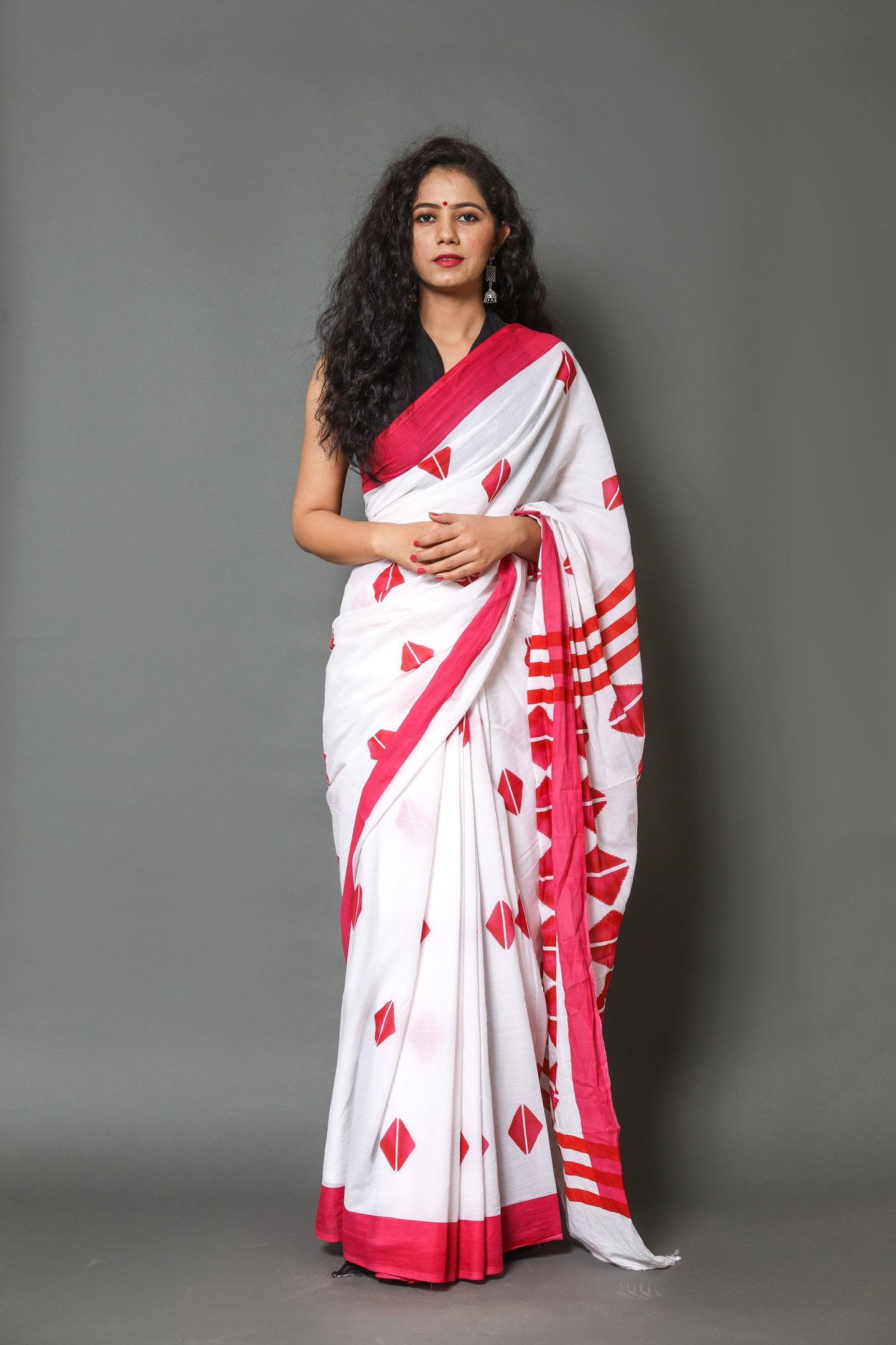 This mul cotton block print saree with unstitched blouse. This is perfect for summer session. Block print always give a classy look, this can be paired with flat sandals and oxidized jewelry.