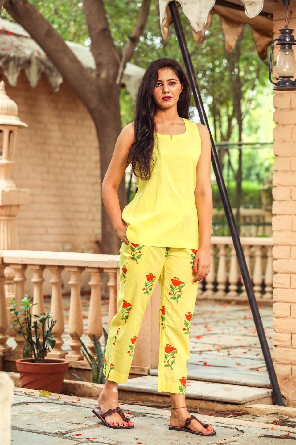 This twin set have straight up-down kurta and pant in hand block butta print cotton .
